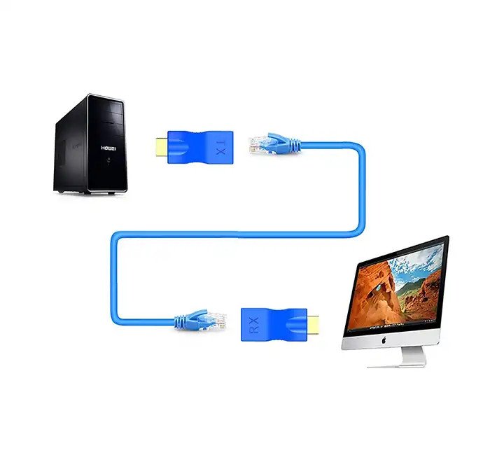 HDMI Extender RJ45-CAT5-CAT6 omogućava produženje HDMI signala na veće udaljenosti uz minimalne troškove i jednostavnu instalaciju, koristeći standardne mrežne kablove. Koristi standardne RJ45 konektore i CAT5/CAT6 mrežne kablove, što ih čini ekonomičnim i praktičnim za korištenje, posebno u okruženjima gde su mrežni kablovi već instalirani.