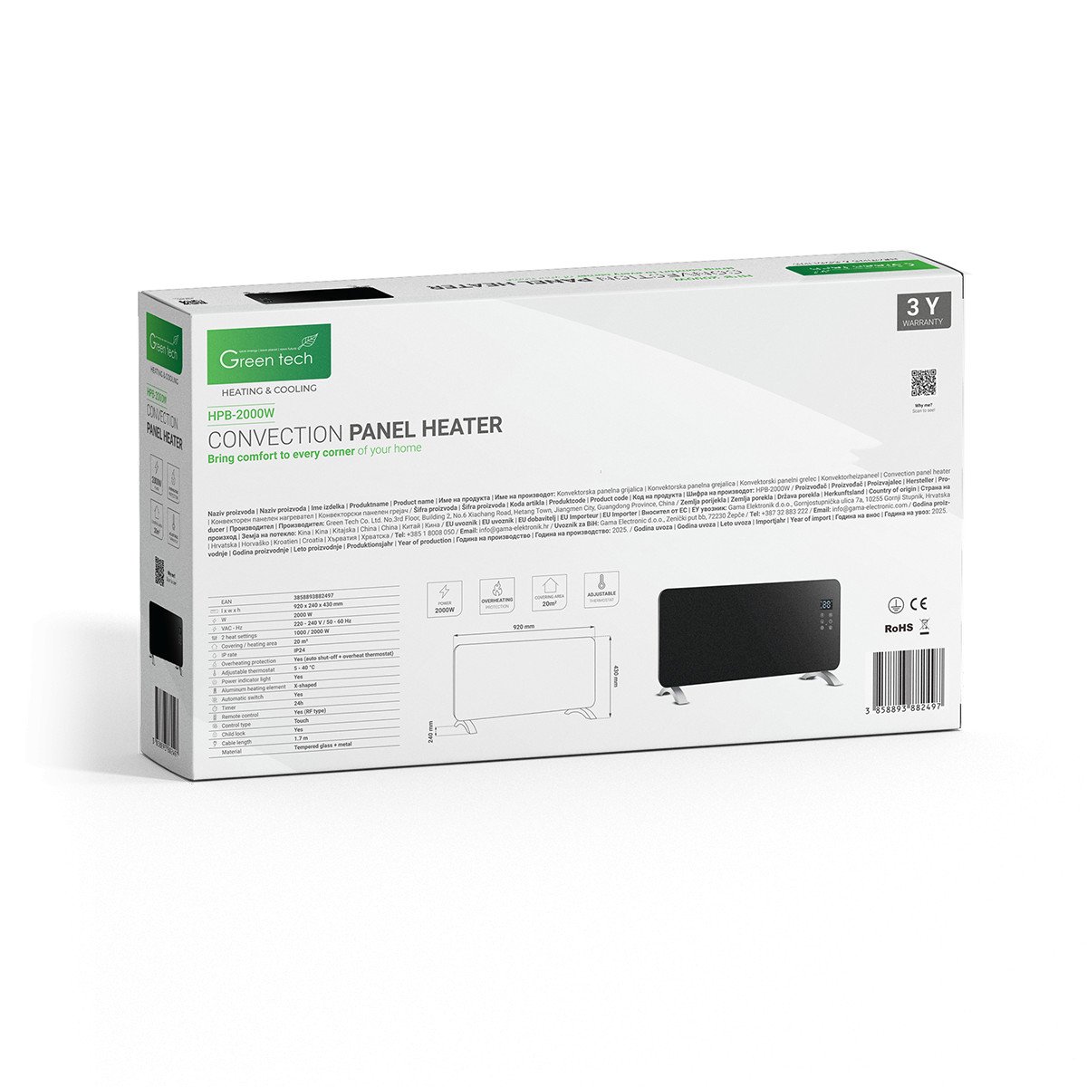 Konvektorska panelna grijalica Green Tech 2000W, WiFi / Tuya app, električna