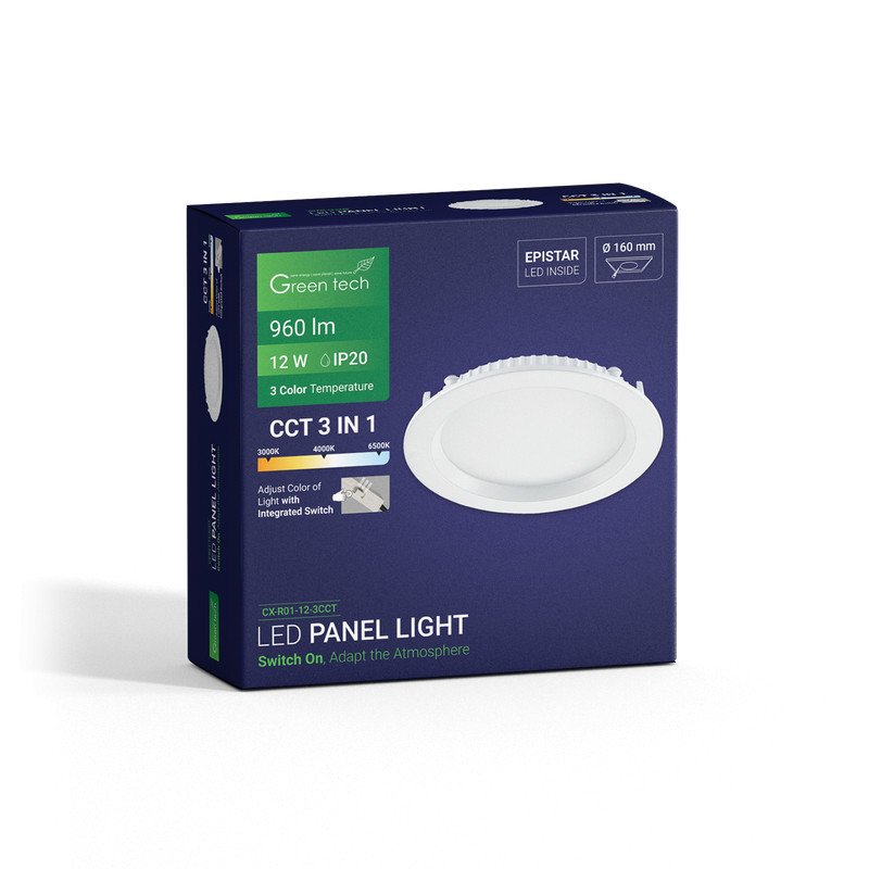LED panel Green Tech 12W, 3CCT, ugradni, okrugli