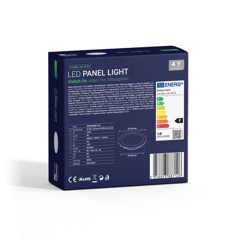 LED panel Green Tech 18W, 3CCT, ugradni, okrugli