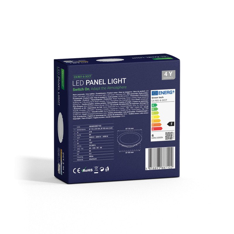 LED panel Green Tech 6W, 3CCT, ugradni, okrugli