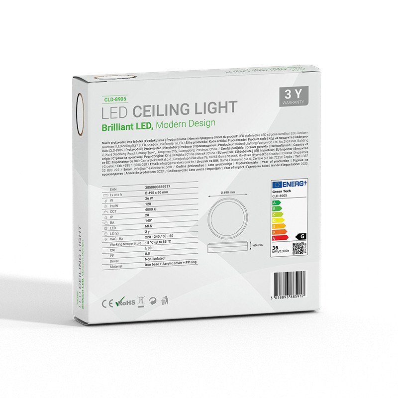 LED plafonjera Green Tech 36W, 4000K, promjer 49cm