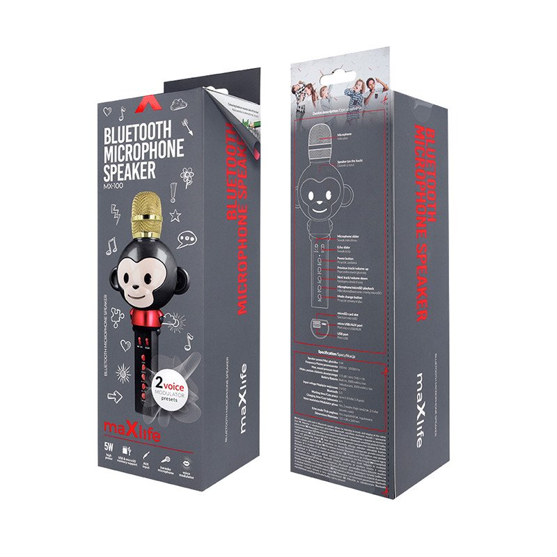 Ovaj bežični mikrofon s zvučnikom je posebno namijenjen djeci koja vole glazbu. Oblikovan kao simpatični majmun, ovaj jednostavan uređaj omogućuje do 8 sati karaoke zabave.
