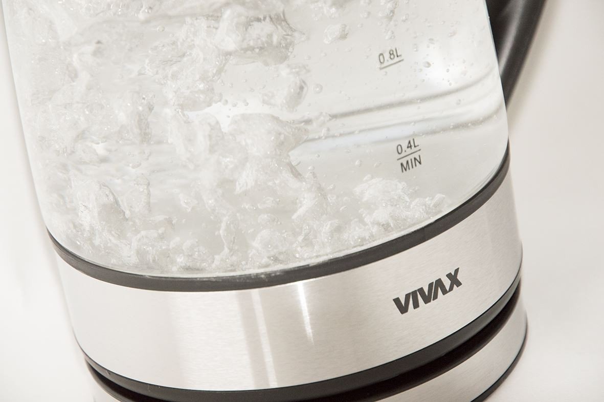 Snaga 1370-1630W, kapacitet 1,2 L, borosilikatno staklo otporno na mrlje , ostalo automatsko isključivanje kod točke vrenja, filter, vanjski pokazivač razine vode,rotirajuća baza 360°, zatvoreni grija...