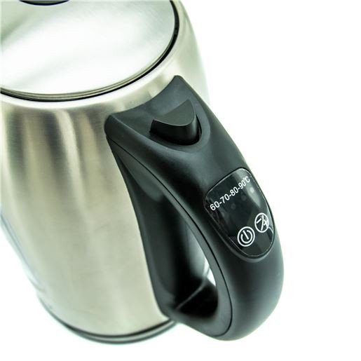 Snaga 1850-2200 W, kapacitet 1,7L, automatsko isključivanje, filter, vanjski pokazivač razine vode, svjetlosni indikator, LED svjetlo za vrijeme rada, odabir željene temperature zagrijavanja vode, boja inox kućište sa crnim detaljima